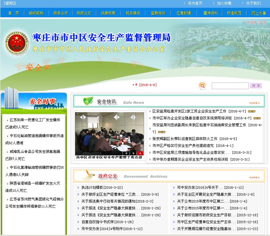 市中區(qū)安全生產(chǎn)監(jiān)督管理局成立于2001年9月,是綜合管理全區(qū)安全生產(chǎn)工作的行政執(zhí)法機(jī)構(gòu),是區(qū)政府監(jiān)督管理安全生產(chǎn)工作的職能部門,也是區(qū)安全生產(chǎn)委員會(huì)日常辦事機(jī)構(gòu)。為適應(yīng)安全生產(chǎn)工作需要,加強(qiáng)對(duì)安全生產(chǎn)的監(jiān)督管理,預(yù)防和減少各類安全生產(chǎn)事故,建立健全統(tǒng)一、高效、職責(zé)明確的安全生產(chǎn)監(jiān)督管理機(jī)構(gòu),制定本工作職責(zé)。 |
