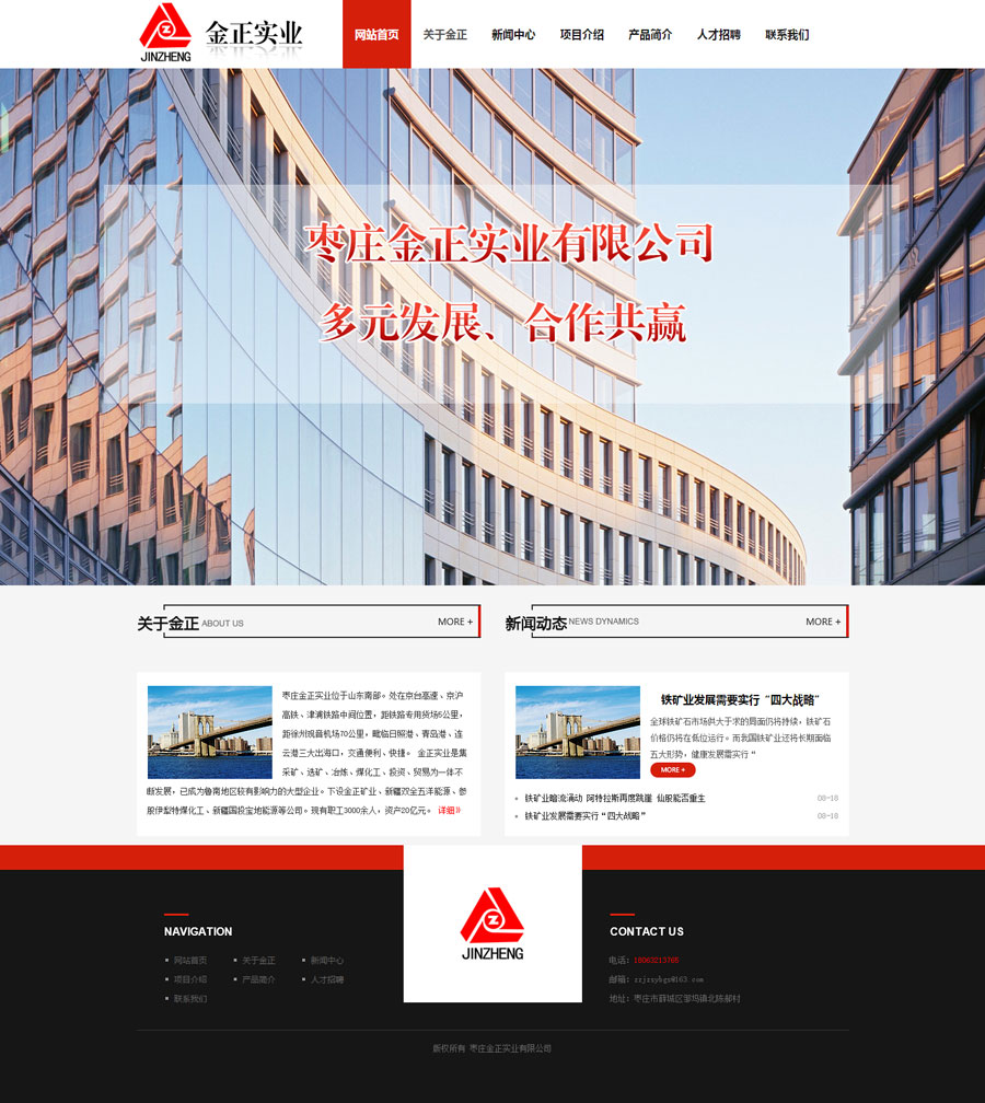 祝賀金正實(shí)業(yè)有限公司網(wǎng)站上線 訪問地址:http://www.jinzhengshiye.com/ 公司介紹: 棗莊金正實(shí)業(yè)位于山東南部。處在京臺高速、京滬高鐵、津浦鐵路中間位置,距鐵路專用貨場5公里,距徐州觀音機(jī)場70公里,毗臨日照港、青島港、連云港三大出?,交通便利、快捷。 金正實(shí)業(yè)是集采礦、選礦、冶煉、煤化工、投資、貿(mào)易為一體不斷發(fā)展,已成為魯南地區(qū)較有影響力的大型企業(yè)。下設(shè)金正礦業(yè)、新疆雙全五洋能源、并參股伊犁特煤化工、新疆國投寶地能源等公司,F(xiàn)有職工3000余人,資產(chǎn)20億元。先后獲得棗莊百強(qiáng)企業(yè)、突出貢獻(xiàn)企業(yè)、誠信經(jīng)營企業(yè)、納稅十強(qiáng)企業(yè)、山東省工會工作先進(jìn)企業(yè)等榮譽(yù)稱號。 金正礦業(yè)年產(chǎn)鐵精粉60萬噸,金正實(shí)業(yè)年產(chǎn)鑄造用生鐵26萬噸,主要銷往江蘇、浙江、福建、安徽、河北、山東等地,深受廣大客戶好評。 公司始終秉承“多元發(fā)展、合作共贏”的經(jīng)營理念,遵循“精誠團(tuán)結(jié)、銳意進(jìn)取”的企業(yè)精神。竭誠為客戶提供優(yōu)質(zhì)的產(chǎn)品和服務(wù)。真誠歡迎各界同仁前來指導(dǎo)、合作,我們愿與您風(fēng)雨同舟、攜手共創(chuàng)美好未來。